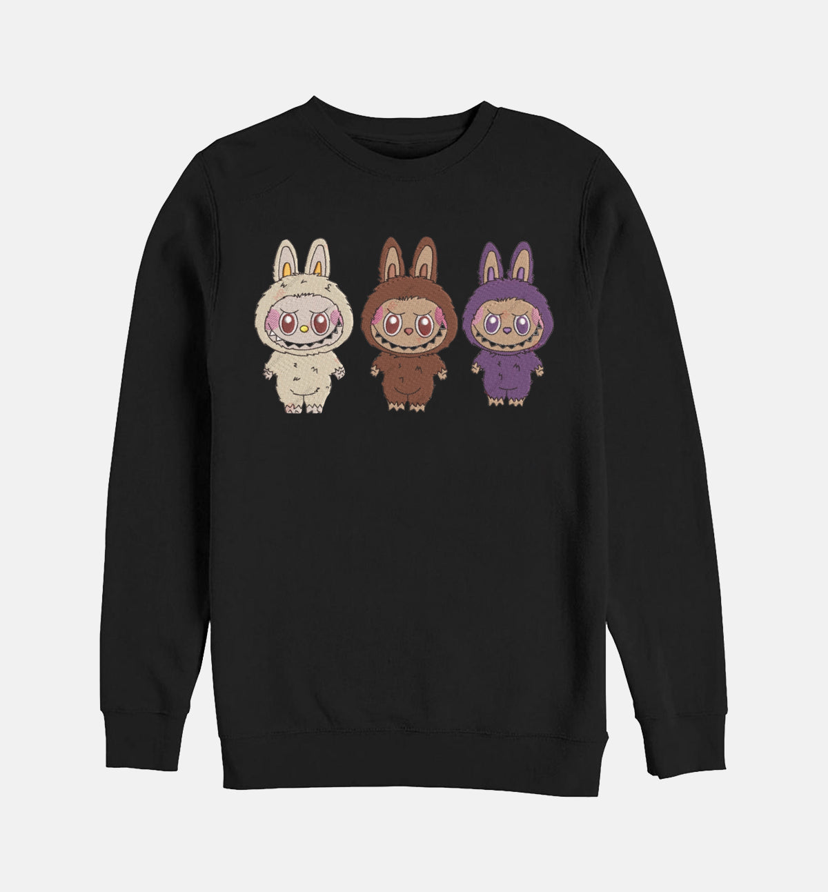 Trys Labubu – siuvinėtas džemperis