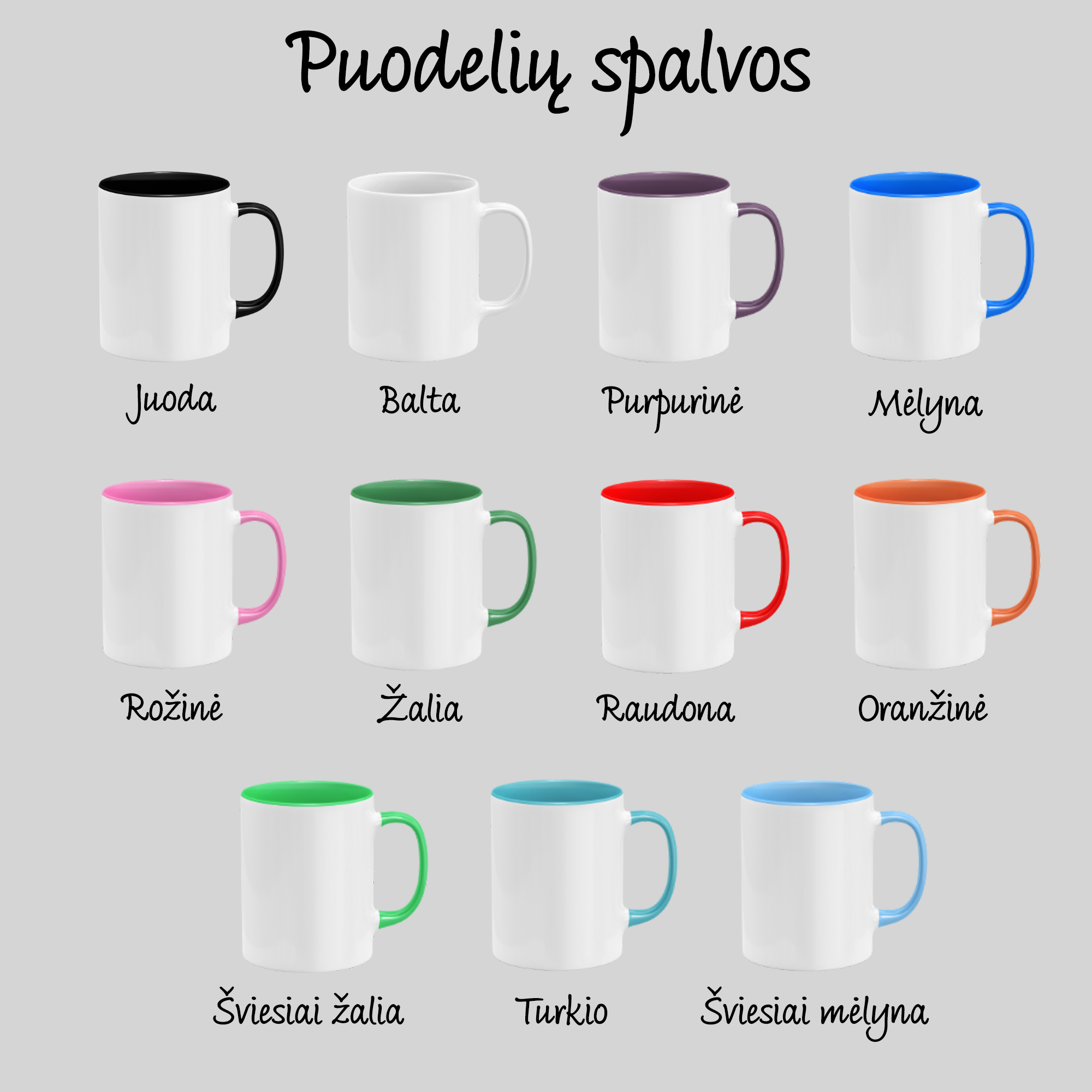 - Puodeliai su spalvota rankenėle: 330ml
